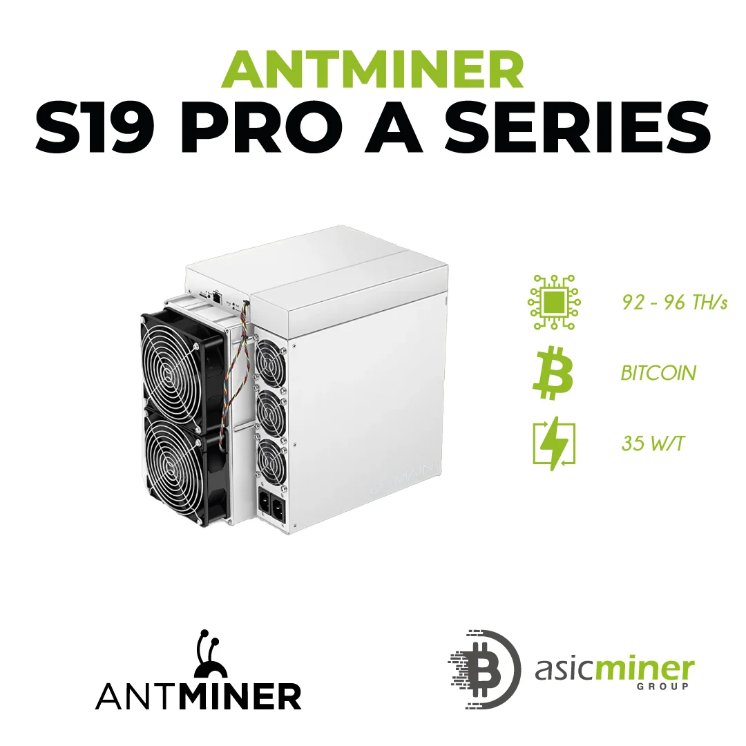 🌐 Antminer S19 PRO A – Proven performance and efficiency for SHA‑256 mining (92–96T)